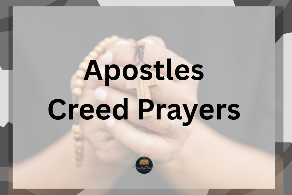 Heavenly Father, through the Apostles’ Creed prayers, deliver me from fear and worry. Fill my heart with courage, faith, and steadfast trust in Your plan. Shield me from anxiety, spiritual attacks, and the lies of the enemy. Remind me that Your love is my refuge and strength, guiding me through trials and uncertainty. Strengthen my mind, soul, and spirit to stand firm in faith and embrace Your peace. May these prayers help me confront challenges boldly, knowing that You are always with me, protecting, guiding, and sustaining me in every situation with unwavering grace. Amen.